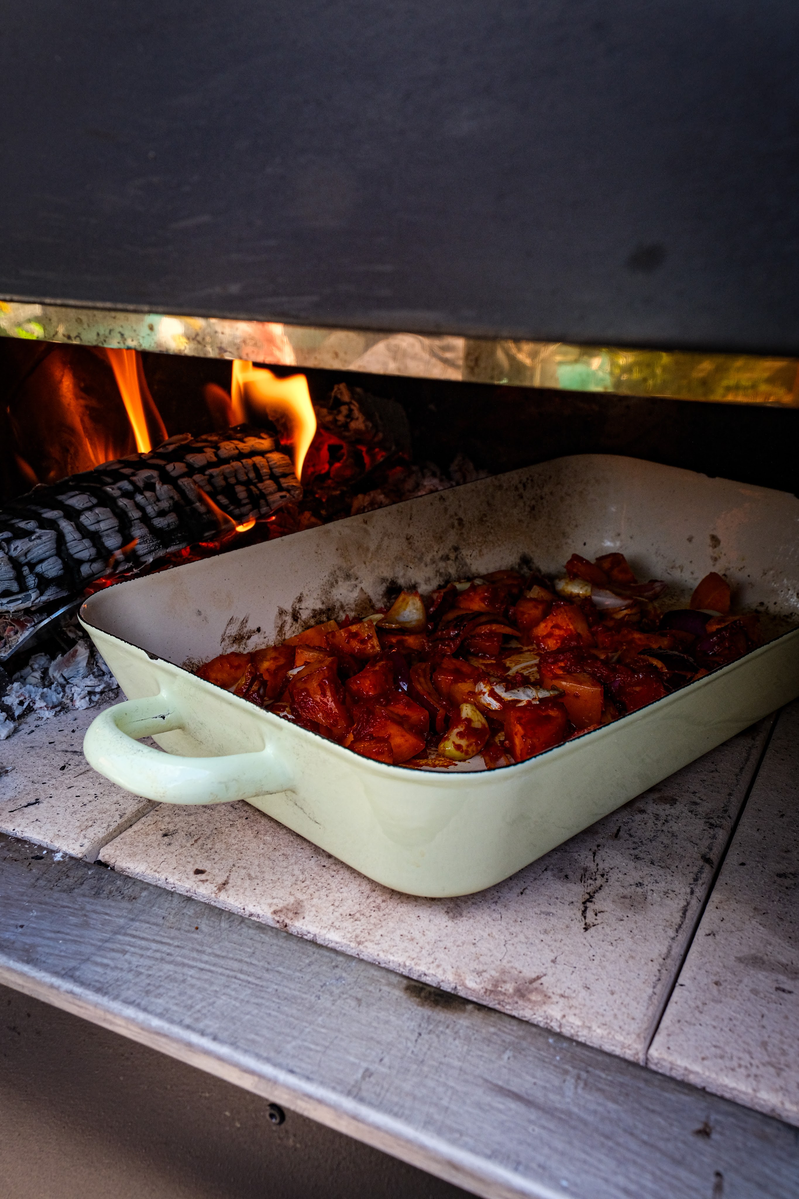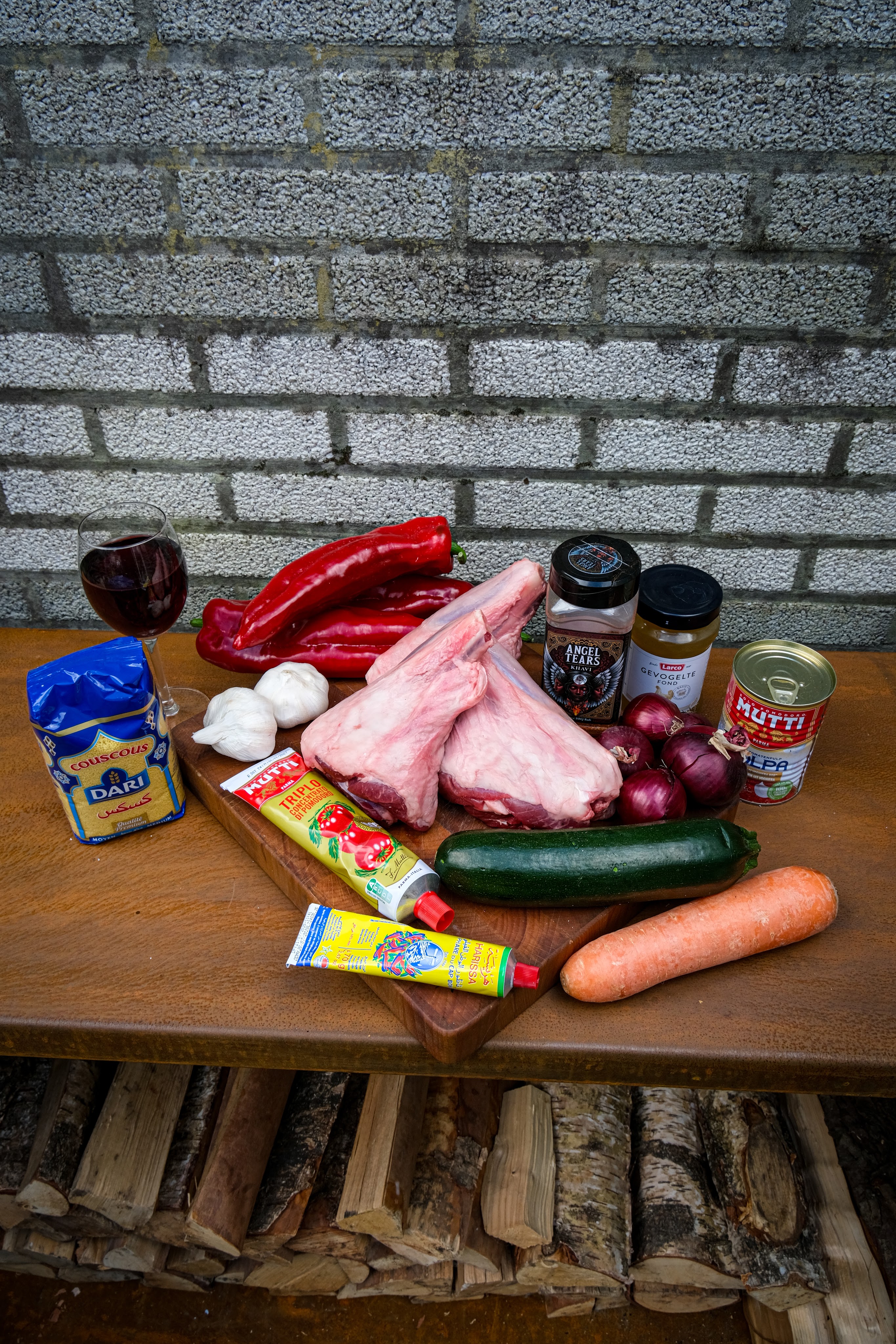 Voor dit gerecht laat ik de lamschenkels langzaam garen in een rijke stoof comfort gerecht dat perfect past bij koken met vuur.
