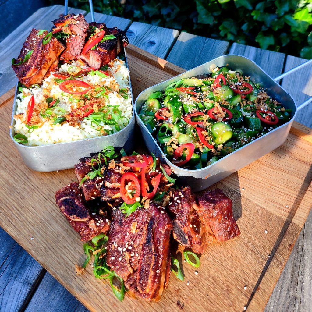 - Rook de shortribs eerst indirect op 140 graden voor een uurtje.